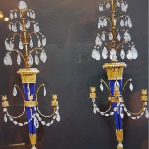 Appliques Cristal Bleu et Bronze ciselé et Doré