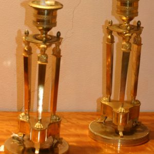 Paire de Bougeoirs Retour d’Egypte en Bronze Ciselé et Doré