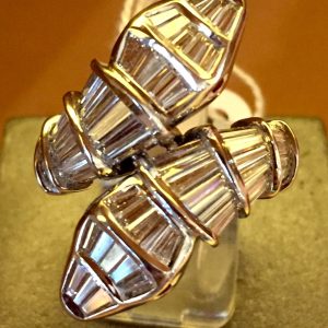 Bague Serpent Deux Rangs Diamants Baguettes et Brillants