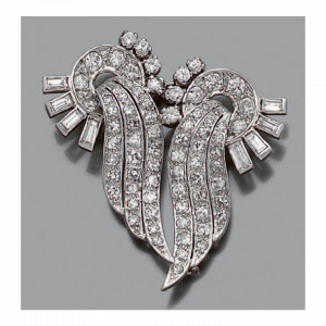 Broche Clips de Revers Art Déco En Platine et Brillants