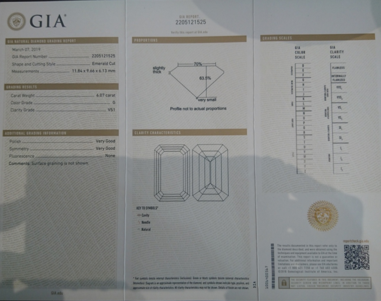 Solitaire Diamant 6,07 Cts G Vs1 Taille Emeraude