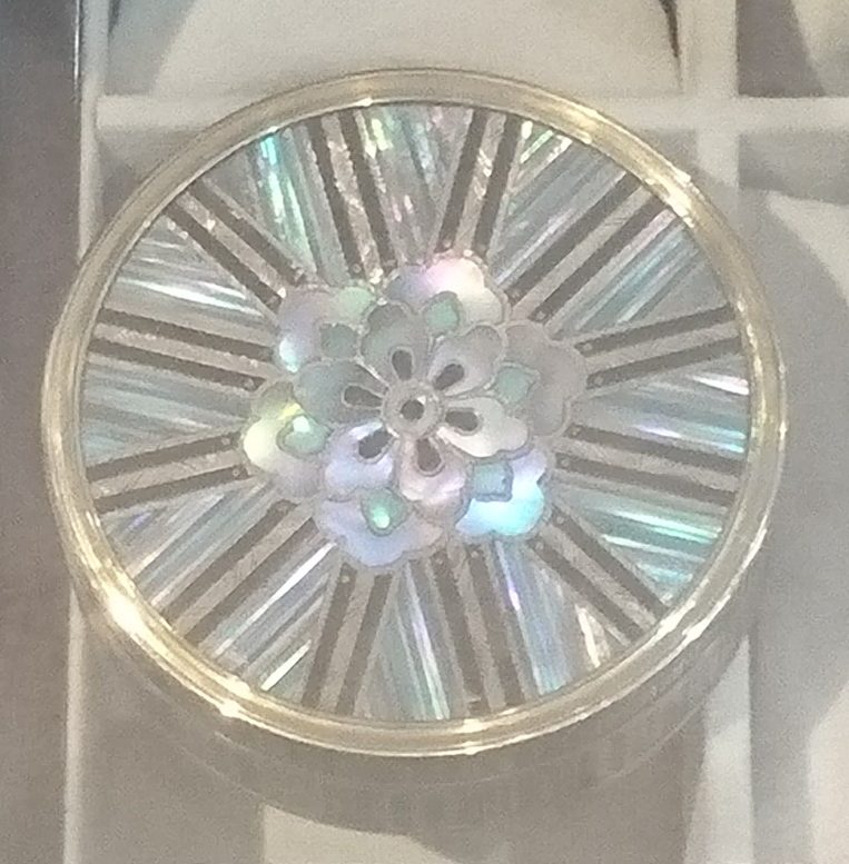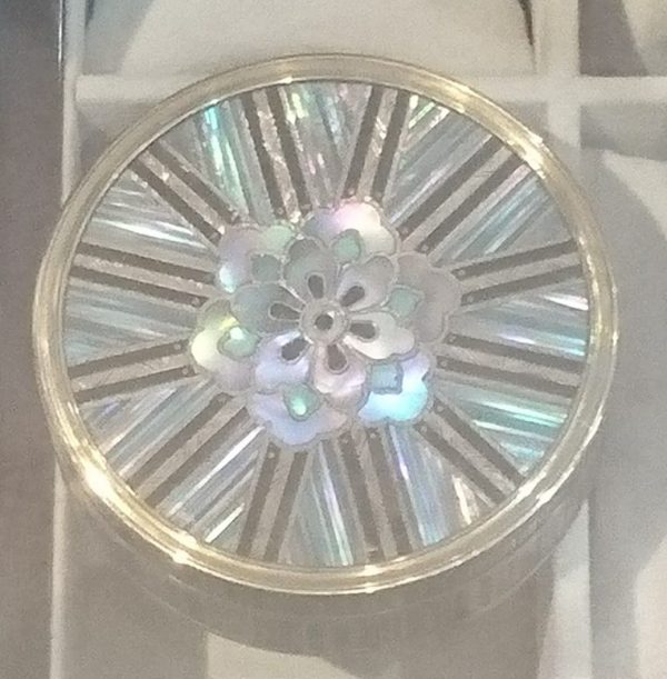 Boite en Or à décor d’une fine Marqueterie de Nacre de couleur ,