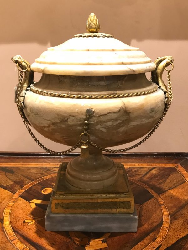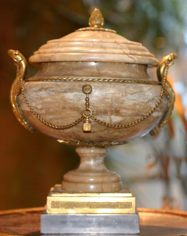 Cassolette en Onyx Rubané et Bronze Ciselé et Doré au Mercure d’Epoque Louis XVI
