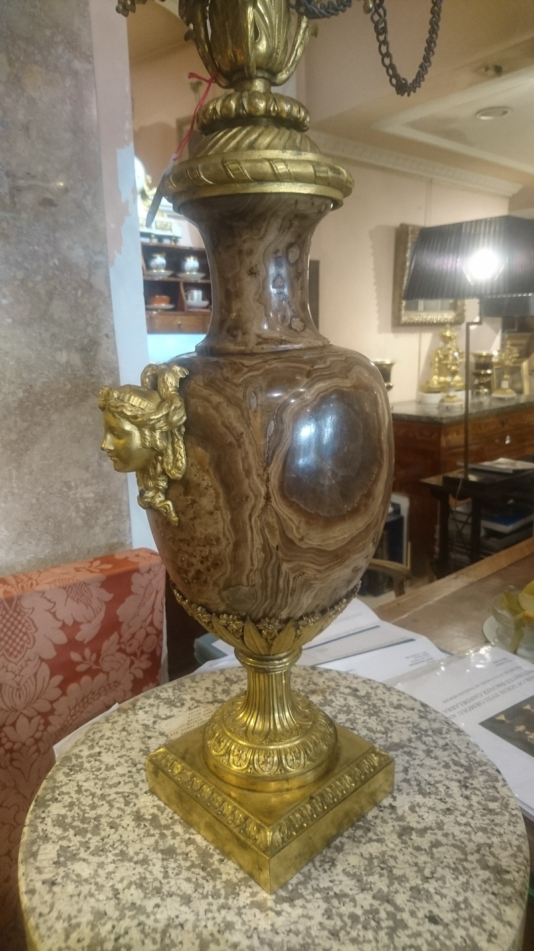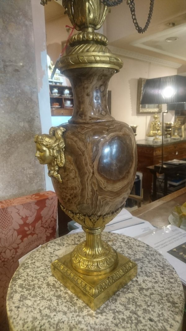 Exceptionnelle Paire de Candélabres en Bronze Ciselé et Dore , d’Epoque Néoclassique le fût en Agate Rubanée ,