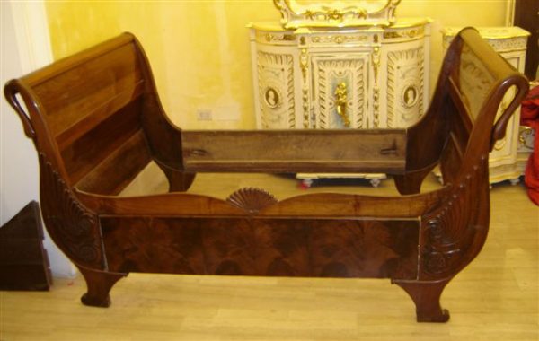 Lit d’Epoque Empire , En Acajou Massif , à décor de Cygnes