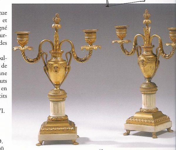 Paire de Candélabres en Bronze Ciselé Dore et marbre Blanc Statuaire , d’Epoque Louis XVI