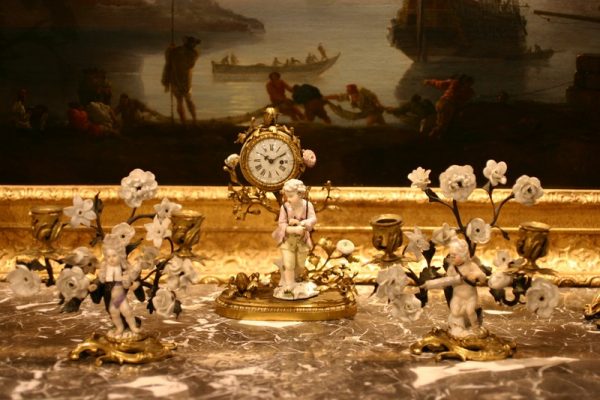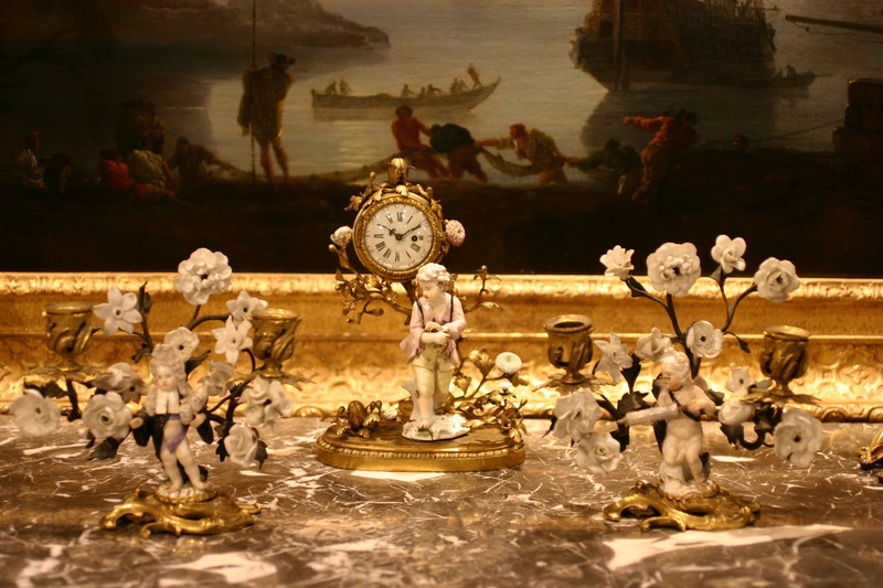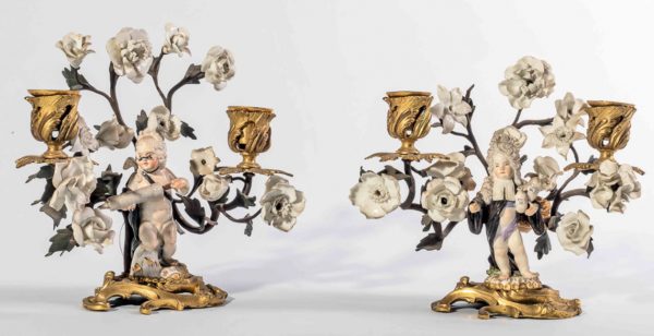 Paire de Candélabres en Porcelaine de Meissen , Bronze Ciselé Dore , d’Epoque Louis XV