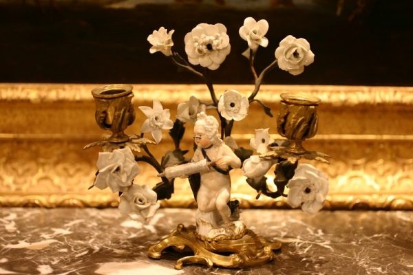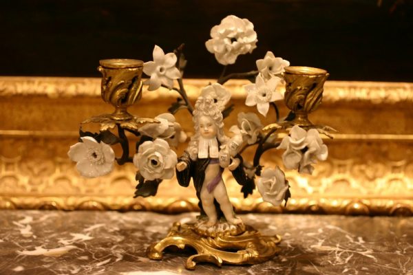 Paire de Candélabres en Porcelaine Meissen , Bronze Ciselé Dore d’Epoque Louis XV