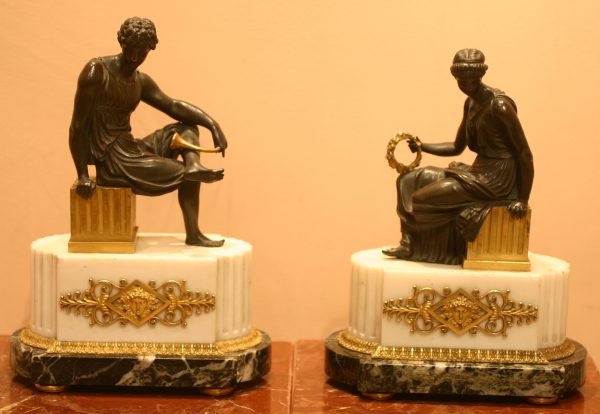Pendant de Groupes en Bronze Ciselé , Patiné et Doré , sur socles en Marbre , d’Epoque Louis XVI