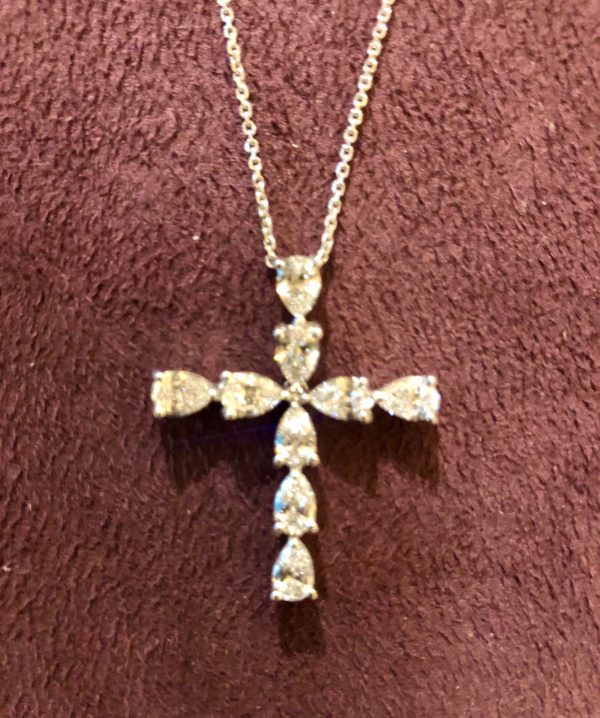 Pendentif Croix Diamants Taille Poire par 0,25 Cts chaque ,